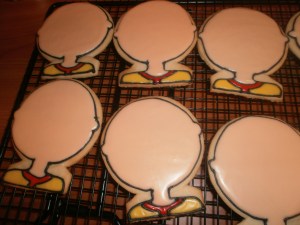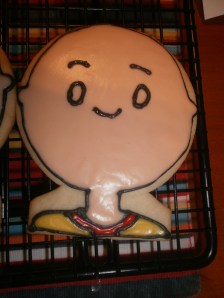 I felt confident going into these cookies, but I got nervous when it came time to put the face on Caillou. So I took it in parts.