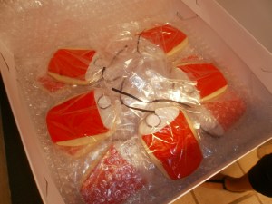 So the birthday girl lives in Chicago. Yeah, I’m in California… first attempt at shipping. We used LOTS of bubble wrap, and chose overnight FedEx.