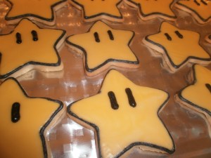 These Marios took me forever. Note to anyone wanting Mario cookies – do not even attempt to ask for more than a dozen. I will not do it. Sorry. Instead of killing myself with a ton of Marios, I decided to do some mushrooms and stars also.