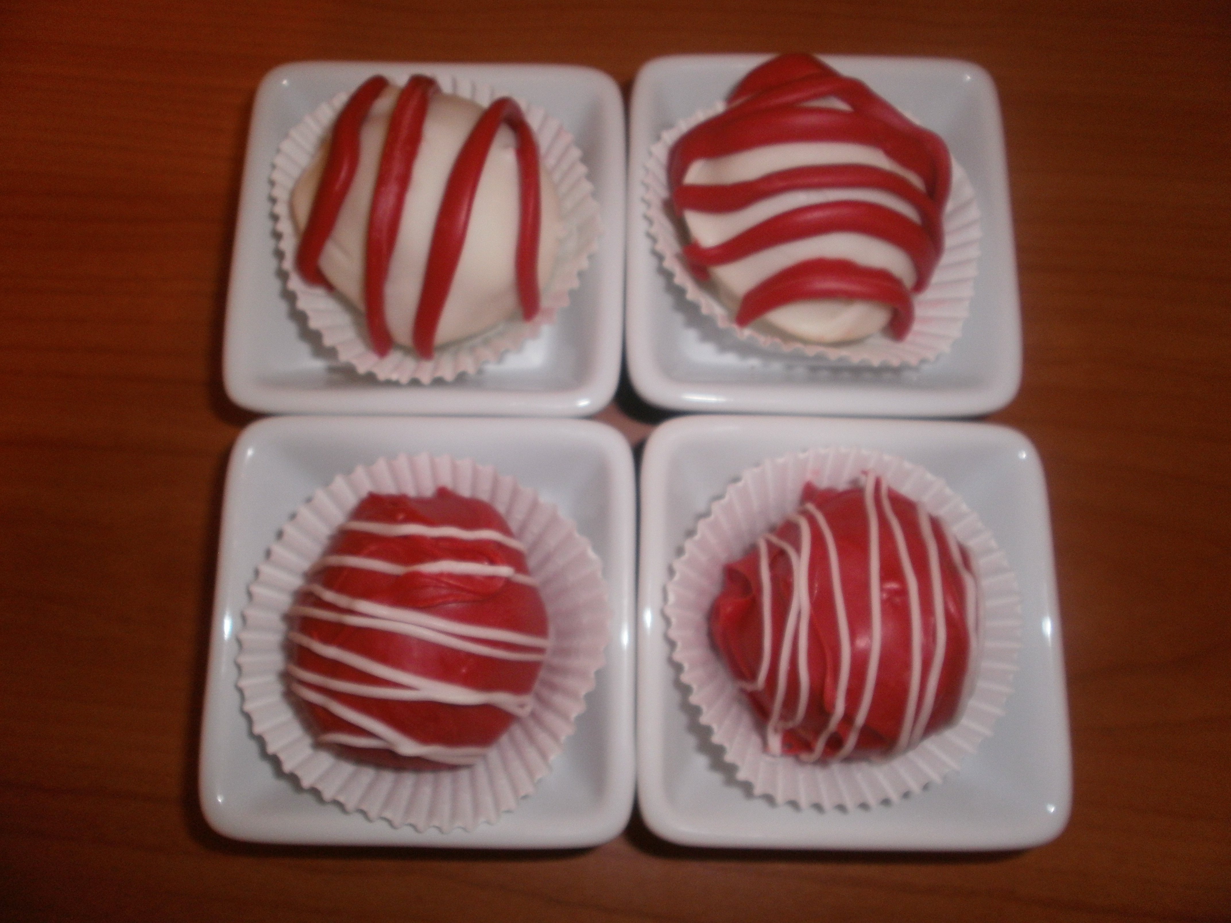 Then I formed balls (just like cake pops) and set them on wax paper. I did a few with sticks, but I left the rest just as balls so they could be cute little truffles.