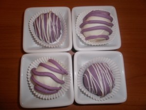 The purple candy melts you buy were kind of a weird color so I added some purple food coloring (Gel kind only, you don’t want to add liquid to candy melts!)