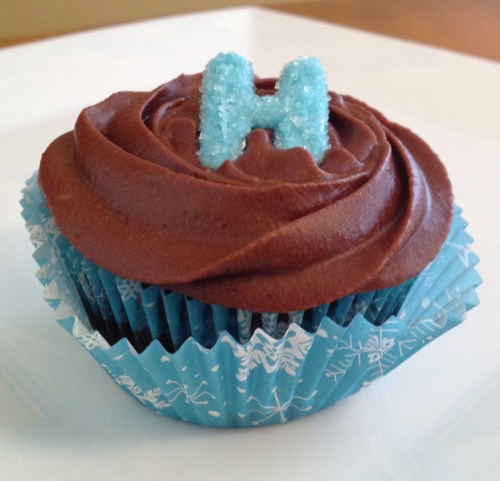 I had never made chocolate frosting before, so I started off with the frosting recipe on the cocoa box. It was too runny to pipe, so I ended up adding a lot more powdered sugar to make it thicker. I honestly couldn’t tell you what the end quantities were… next time I make it I will keep better track of it. If I had to guess, I used at least 2x the powdered sugar. It still wasn’t thick enough, so I decided to add another stick of butter. The butter would not integrate into the frosting (because it was so runny) so there was little lumps of butter throughout. I stuck the whole thing in the fridge thinking it would thicken up a bit and then I could try whip it again. Still didn’t work… As a last ditch effort, I stuck the whole bowl of frosting in the microwave. I let it all get runny and melty (and smooth!) then I stuck it back in the fridge for a while. When I pulled it out and stuck it back in the mixer, it whipped up perfectly! I will be making it again, as it was approved by the chocolate lovers in my family. Except next time I will know exactly what to do to thicken it up!