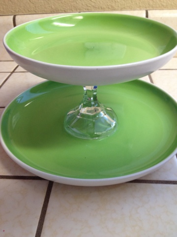 This one I decided to make into a 2-tiered stand, since the plates matched and were different sizes.