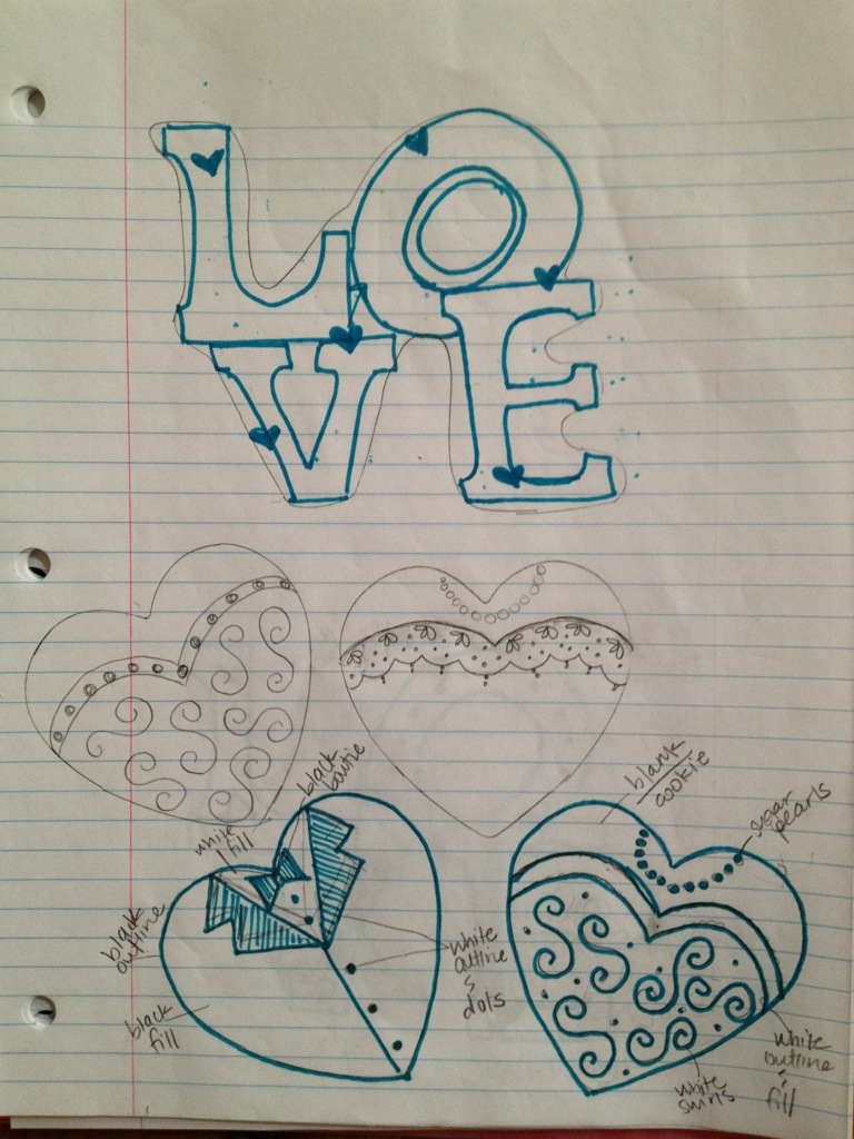 As promised, I would like to show my sketches, mock-ups, and how I tend to plan when I’m working on a set of cookies. (Most of the images will open bigger if you click on them.)