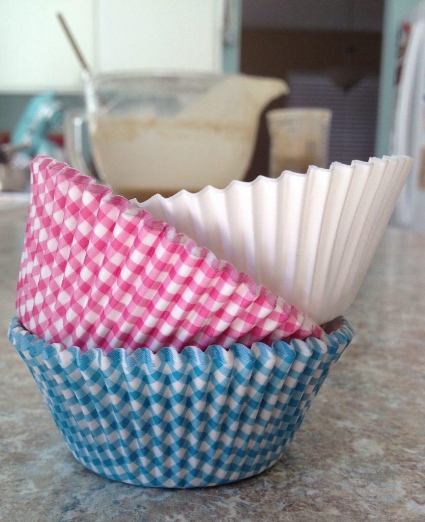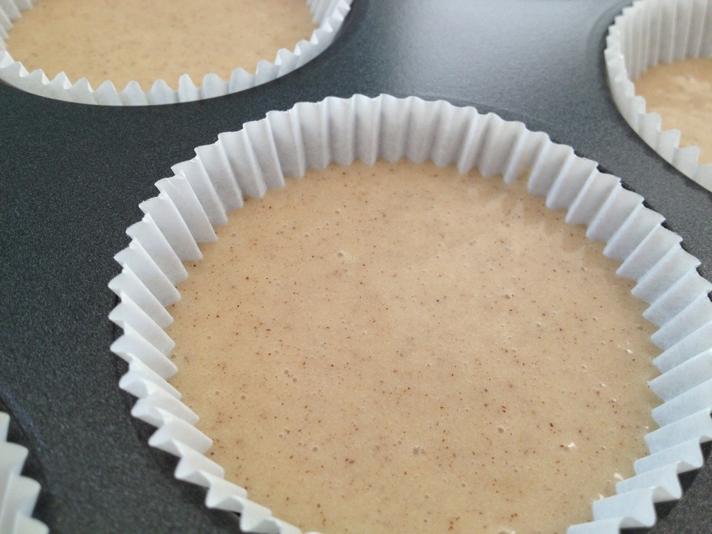 5. Line a cupcake pan with liners and fill each about 1/2 way. Do not overfill!