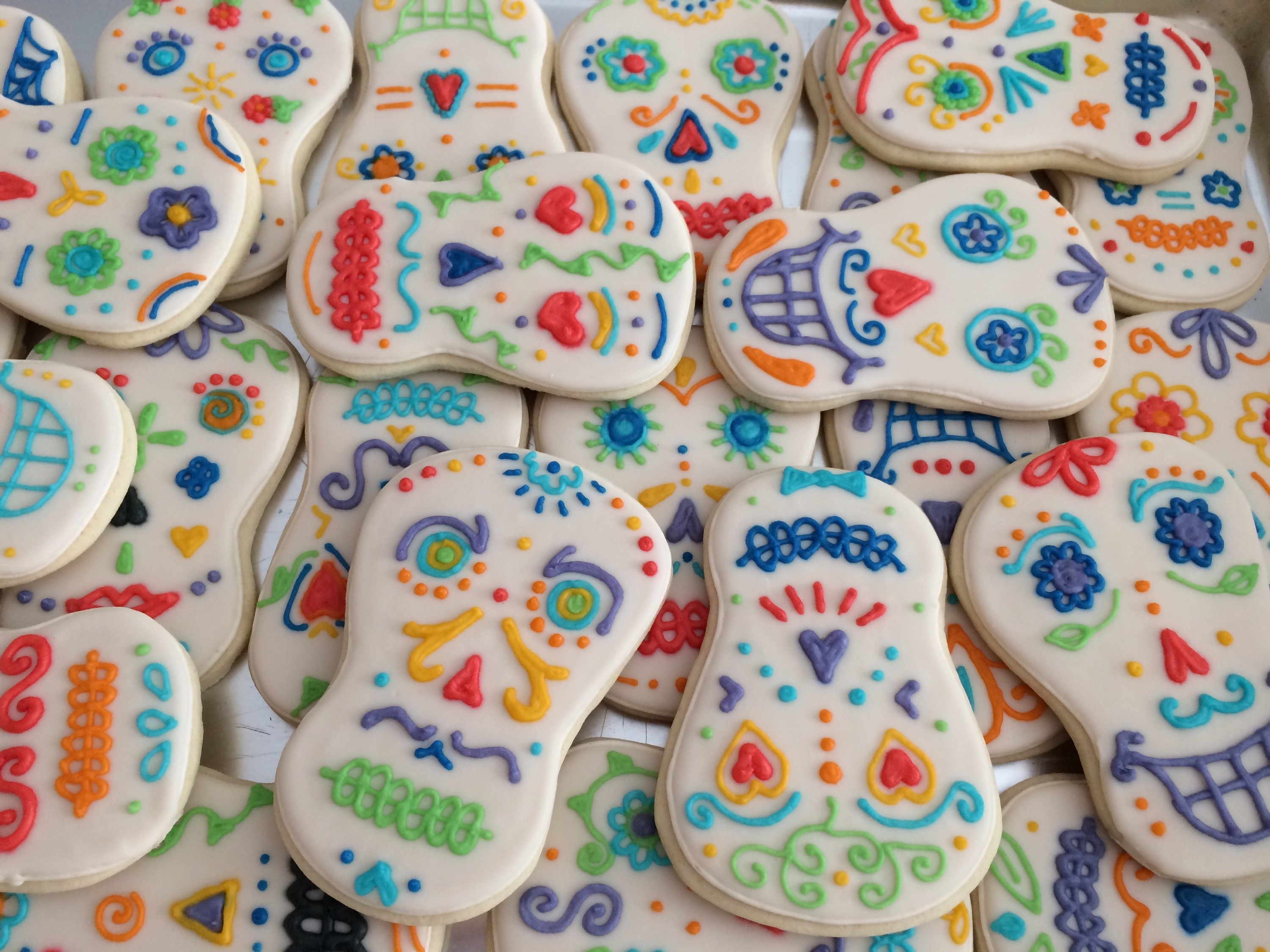I had so much fun making these. I googled sugar skulls, dis de los muertos, and everything like it tso that I could pull ideas from all over. I even had a Fancy Flours catalog on hand with a nice selection to be inspired by.