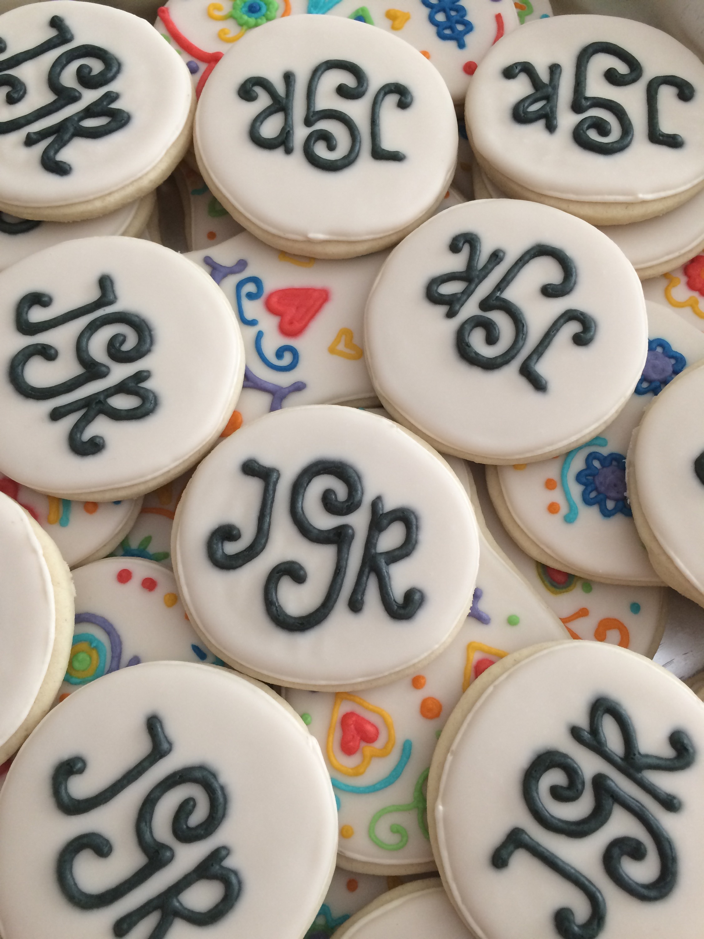 I also did some monogram cookies. The event called for more cookies than I knew I could handle if they were all skulls so I did half of them like this monogram to pair well with the rest of the cookies.