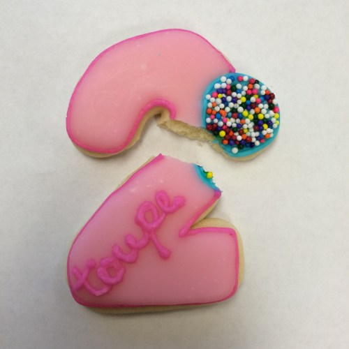 No one wants a wasted cookie. So I ended up filling them in and adorning with sprinkles and puns so that I could take them to work to be eaten.