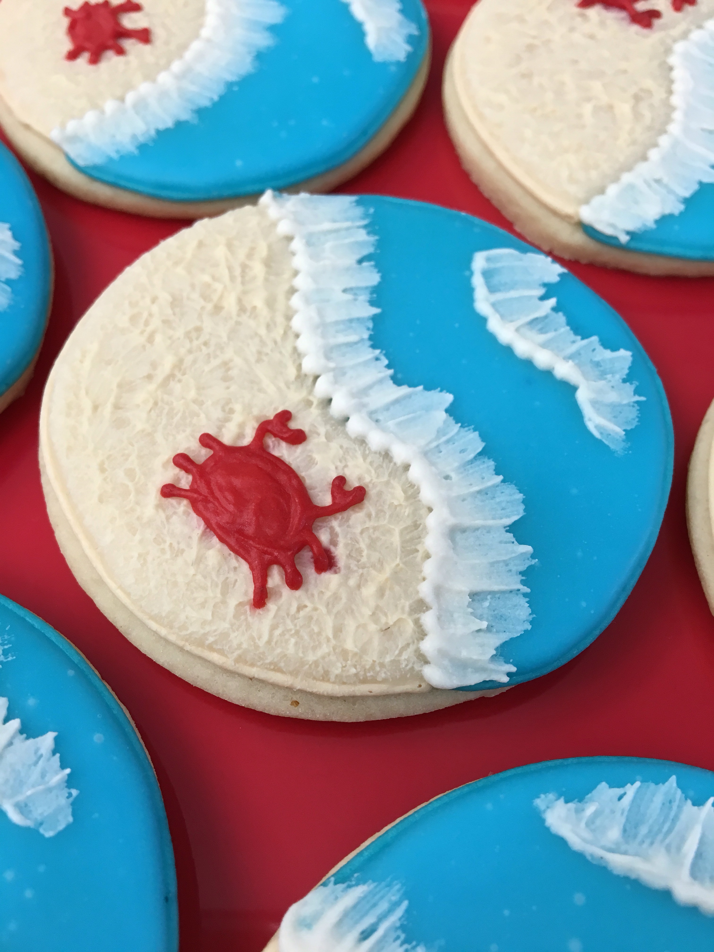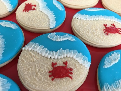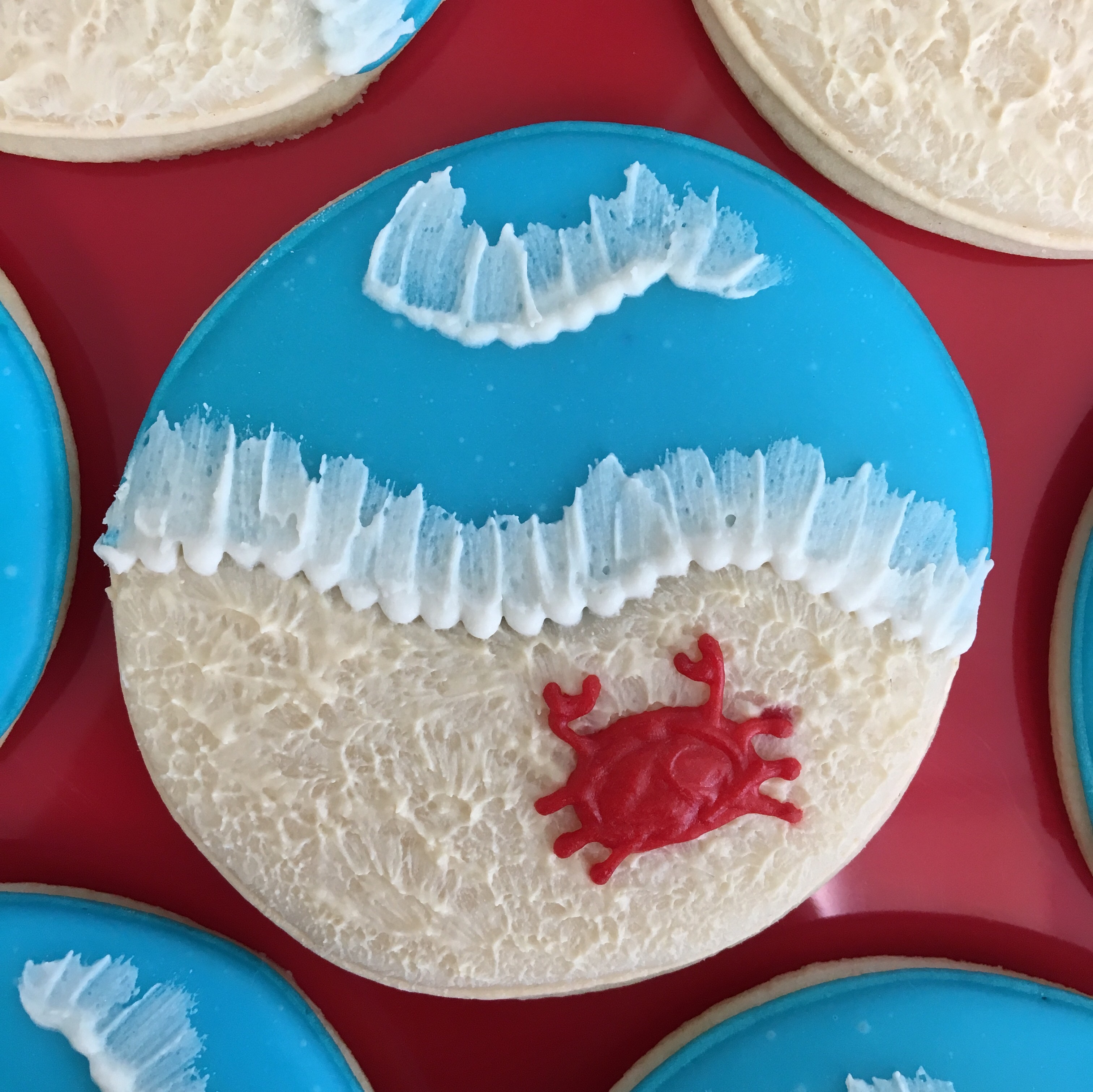Once the beach was dry, I piped a tiny little crab on each one. They might look pinchy but I think they are just too cute!!