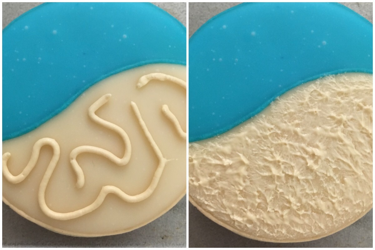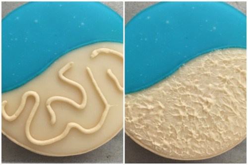 I used my outline buttercream and squeezed some random squiggles on the beach.