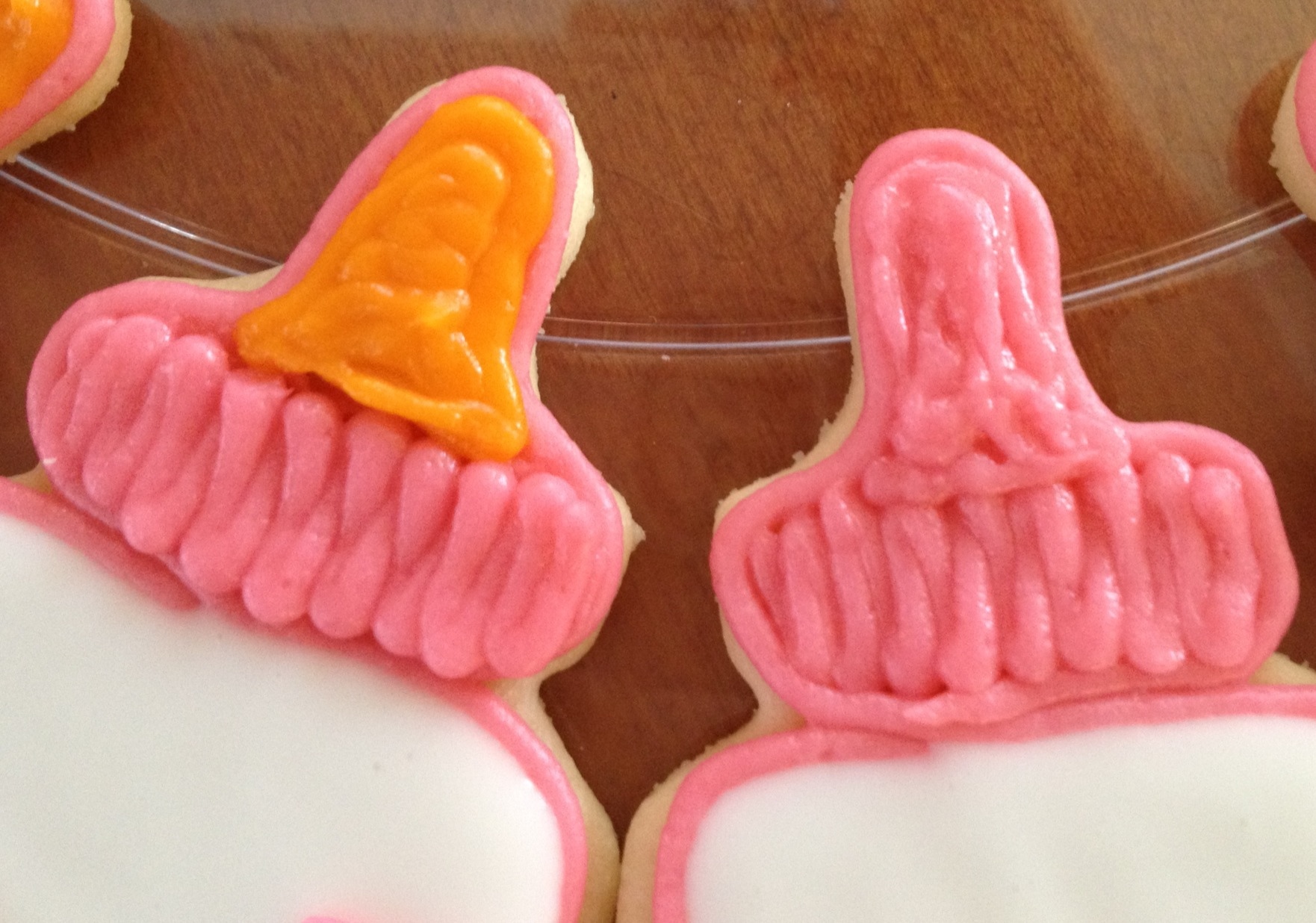 I really liked how much easier it flowed, but I won’t be doing it again. I thought it would make them shinier, but they looked just like my normal icing. I thought maybe they would harden up better, but it was actually the opposite – they still seemed pretty soft after drying for 30+ hours. I bagged them carefully and let them sit over night again before stacking them up for delivery. They were hard enough that they were definitely okay, but I don’t really want to take that risk again. As far as taste goes, I didn’t really notice a difference besides them being softer when I happened to be taste-testing.