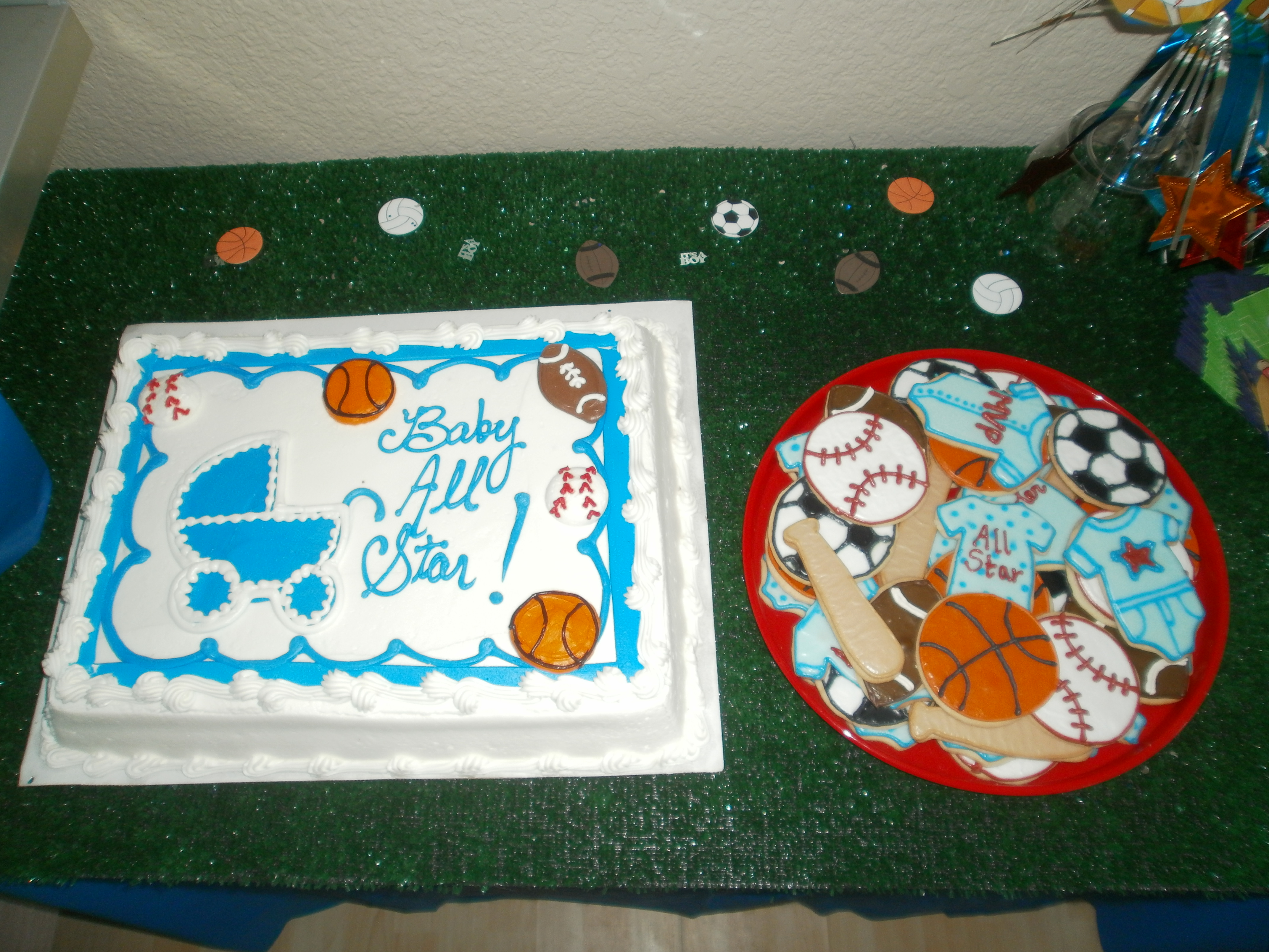 Shower #1 is a general sports theme. Another good friend of the mom-to-be and myself helped with the cookies, and she brought her cousin too!