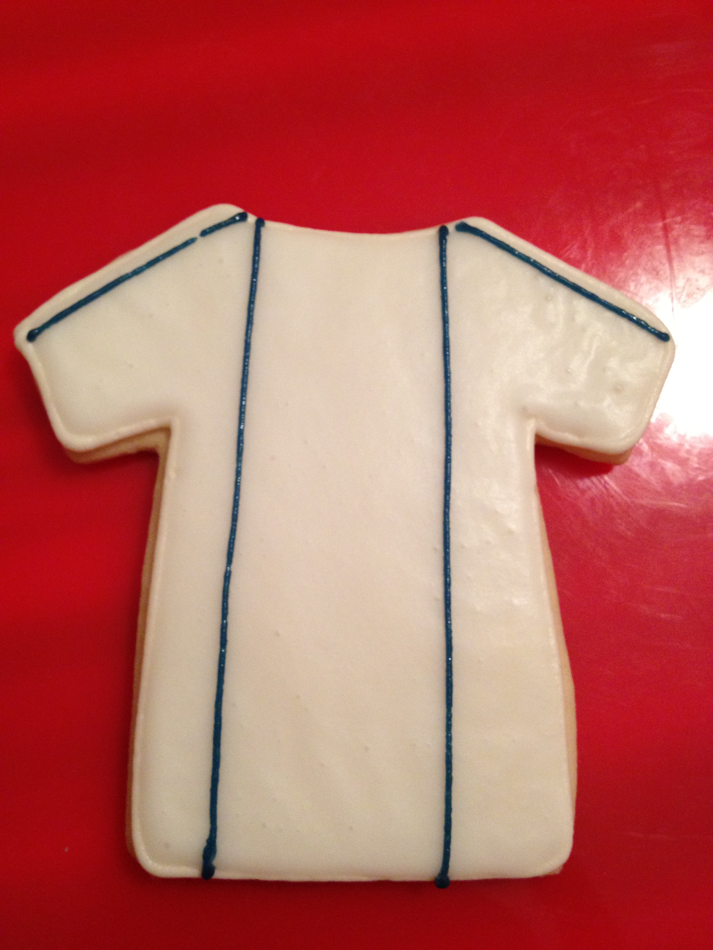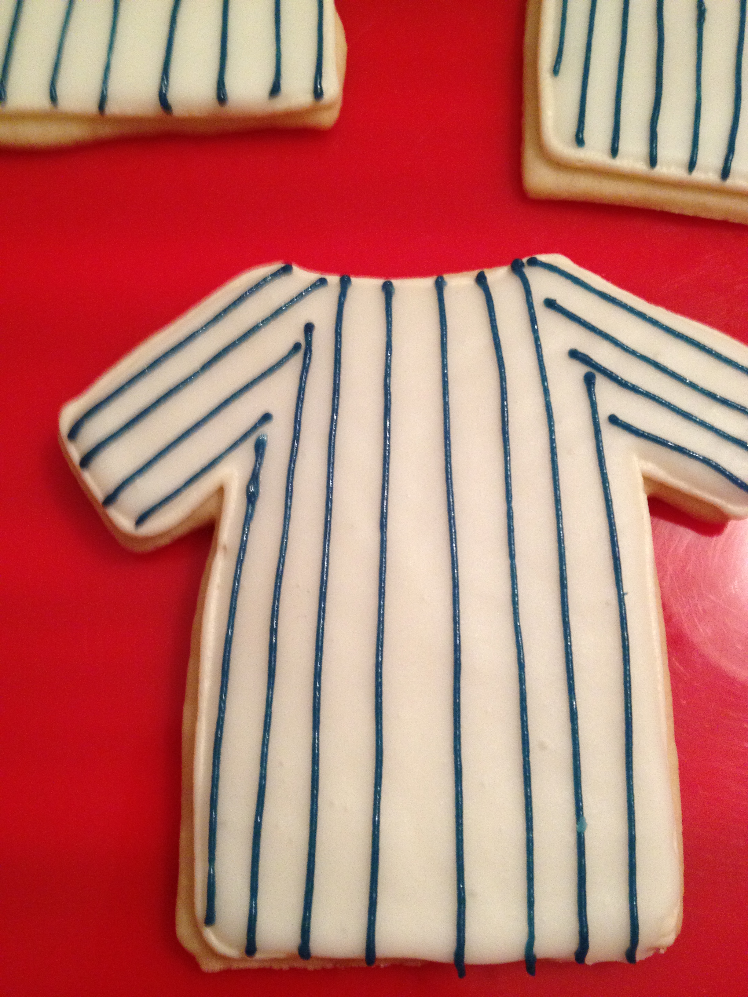 I had originally planned on doing the pinstripes in food color marker, but I was unable to find a dark blue marker. The one I had was a sky blue and that is not acceptable for Yankees!