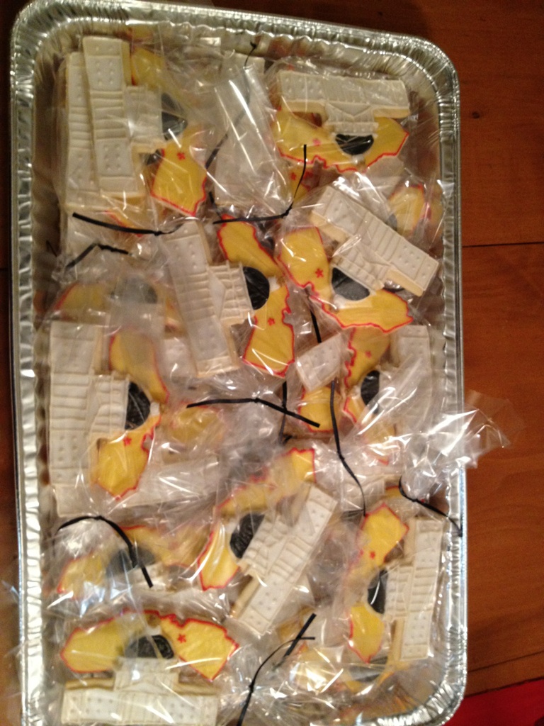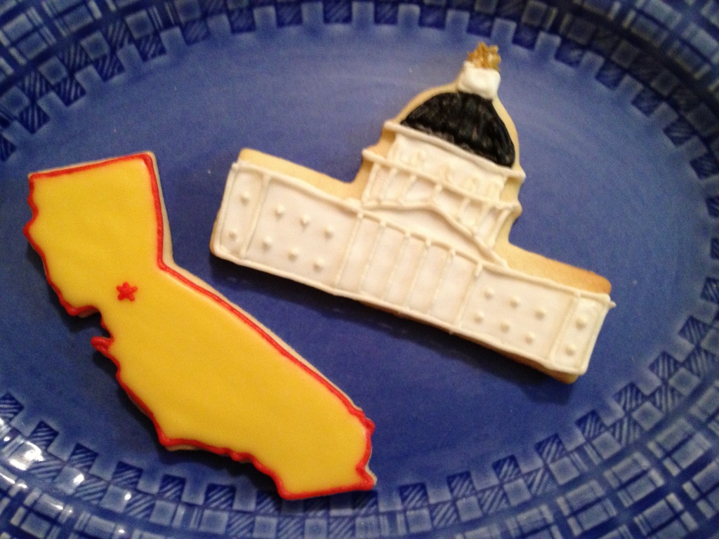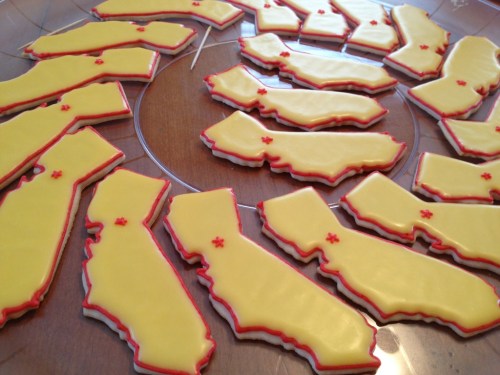 I also had to throw in some California cookies because he is in Oregon. I got my inspiration for these from Andrea of Cupookie. I saw these California cookies she did and knew I had to make my own version!