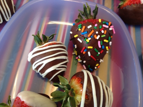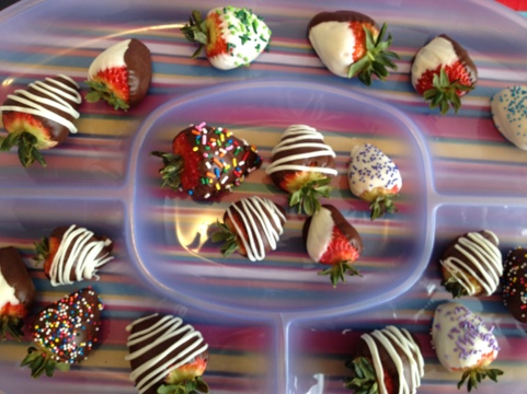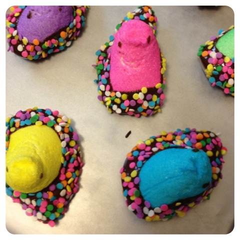 11. Melt chocolate in microwave in 30 second intervals, or in a double broiler. I chose to use my mini crock pot warmer. Once it’s smooth, you’re ready to dip!