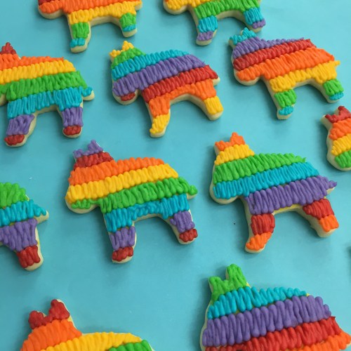 And these are the last 2 that I did… the spray was running out and it started to get blotchy and messy on my poor cookies. Luckily I had made extras, so these were eaten. 1 can of color mist will cover about 50 3″ cookies like this. I’d say if you are doing exactly 50, opt for the 2nd can. You don’t want to end up with this at the end!