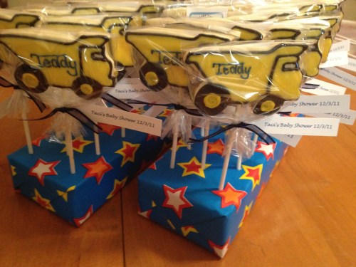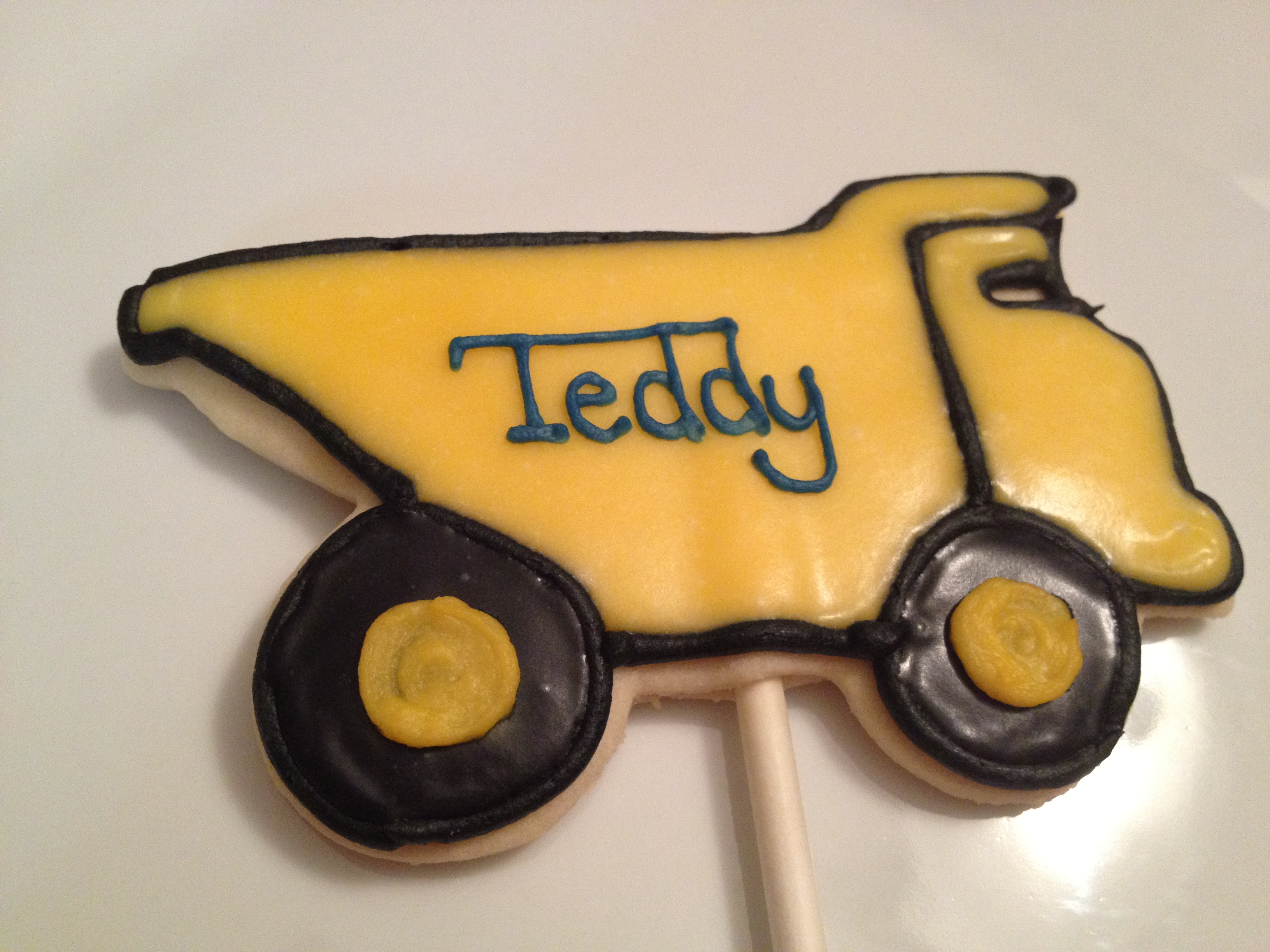 I made the ears and horn from cookies. I baked the horn on a stick so that I could easily put it on and take it off of the cake when it was time. I outlined and filled the cookies in white, plus a little pink for the ears. The horn, once dry, I painted in silver luster dust. I really like this one because you don’t have to mix it, it’s already ready to go.