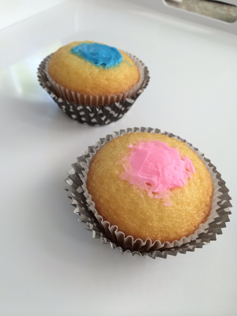 I posted the cored-out cupcake picture above (without the color) on my Instagram to tease the Mama-to-be, and just said something like “Making gender reveal cupcakes” …. and I didn’t even think about it but everyone thought it was MY reveal! Haha, nope – sorry guys, mine is going to be a surprise when Baby comes!!!