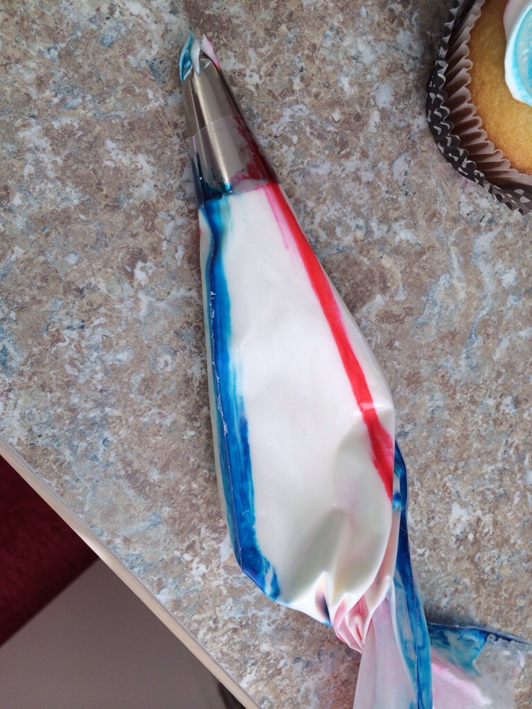 Since I was topping these with white frosting, and I didn’t want the color to seep into the white and ruin the surprise, I left them to crust over a bit while I went to Michaels. 🙂