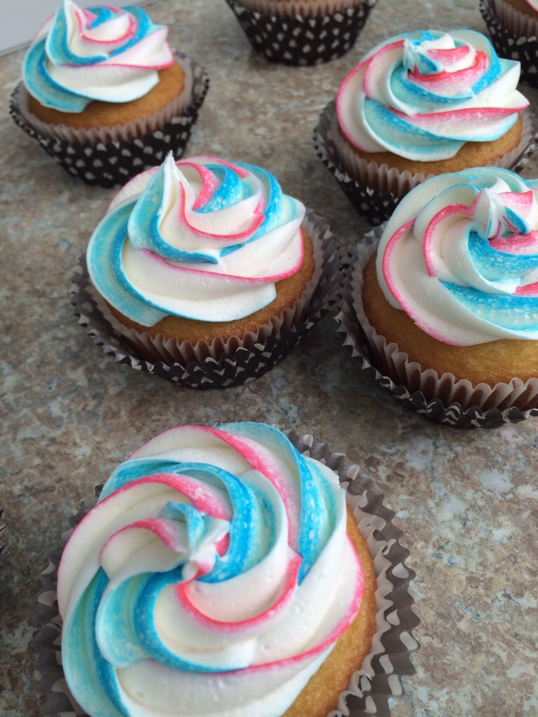 The best thing about funfetti from scratch is that you can have whatever colored sprinkles you want. I added just pink and blue for these special cupcakes.