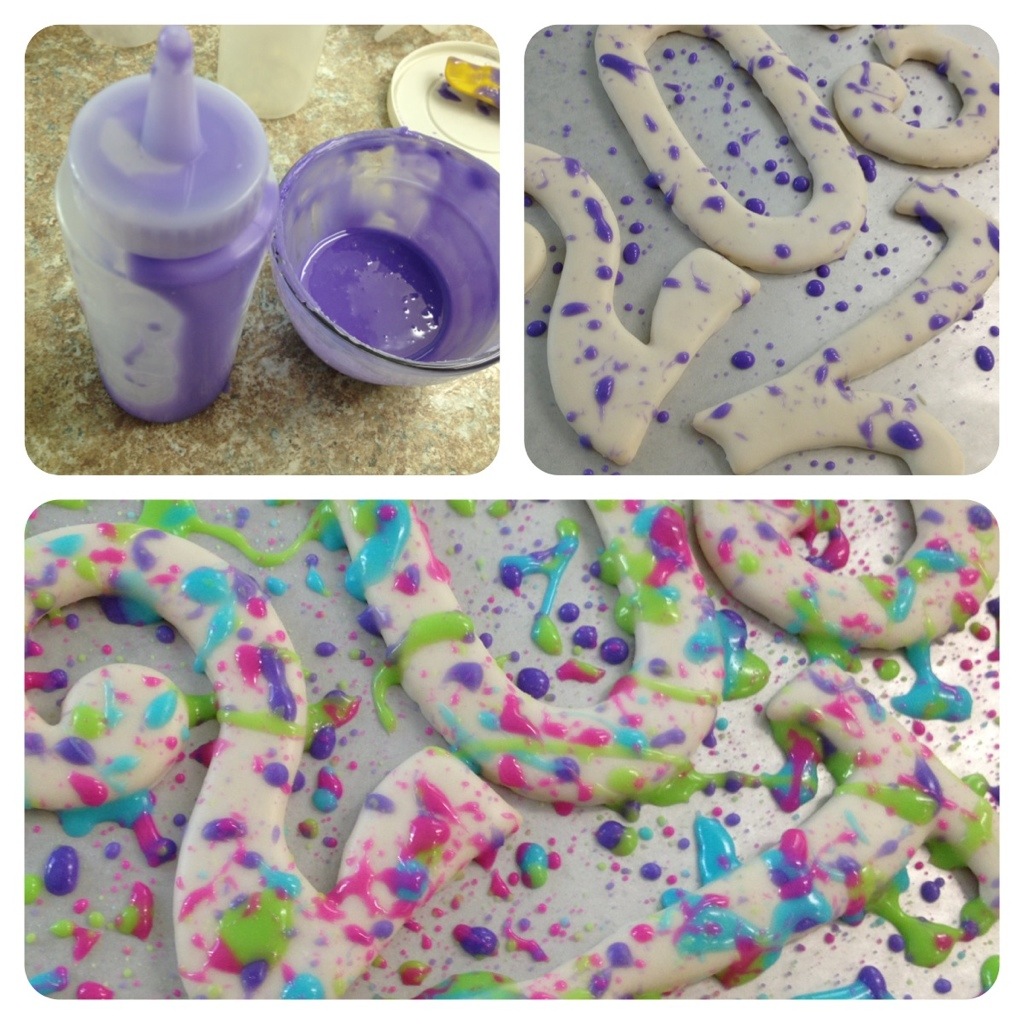 Here is my progression with the rainbows… I wanted it to be as even as possible but didn’t want to have to mark out the cookie ahead of time.