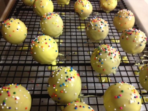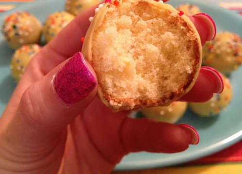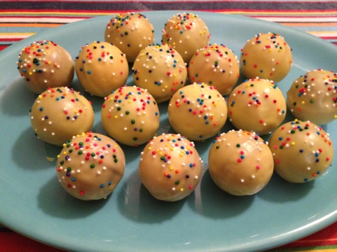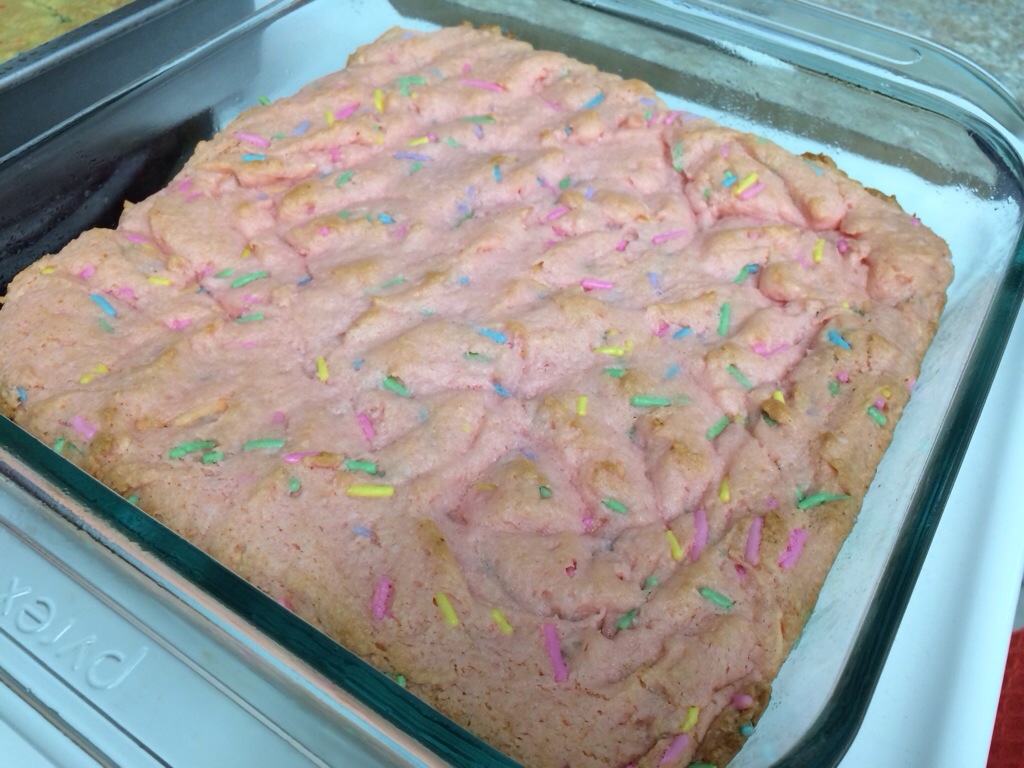 2. Mix together cake mix, oil, milk, egg, and sprinkles. It should be thick and sticky.