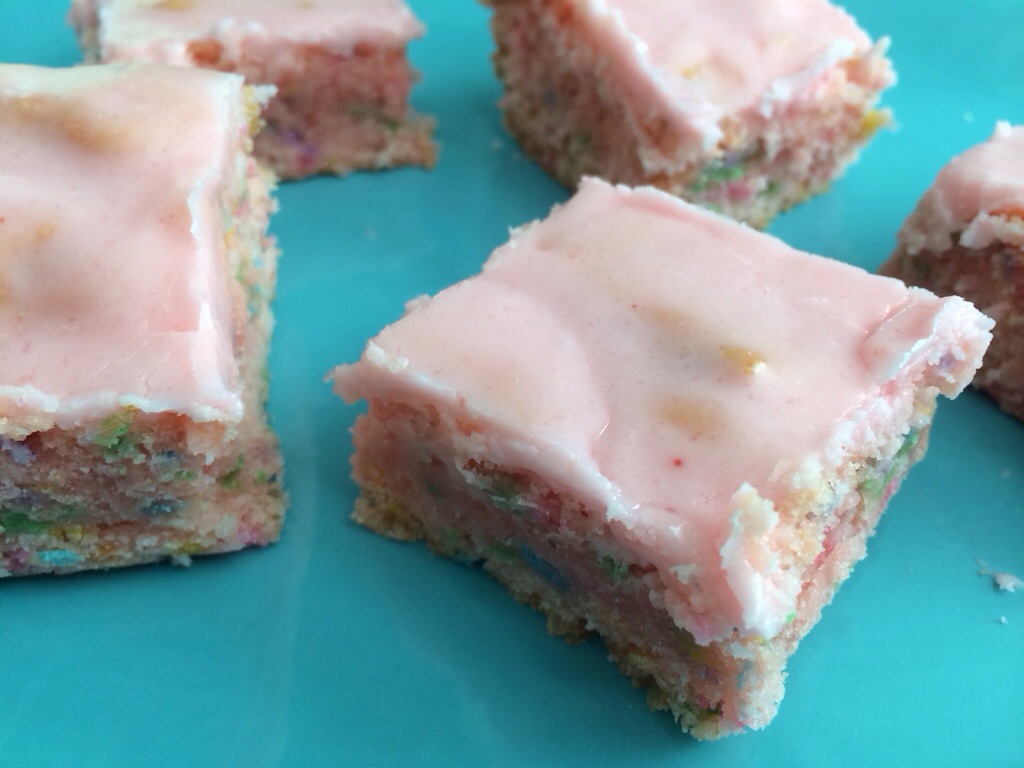 These blondies are sweet and tart and pink and pretty. I can totally imagine them at a little girl’s birthday party!