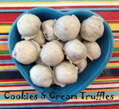 I started off doing okay, they were looking pretty cleanly/perfectly dipped, but then a couple balls got scraped and the oreo started mixing into the candy melts. I almost started stressing but then I realized it made them look like cookies and cream, which makes perfect sense! So that’s why I decided to call these Cookies & Cream Truffles.
