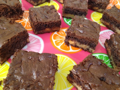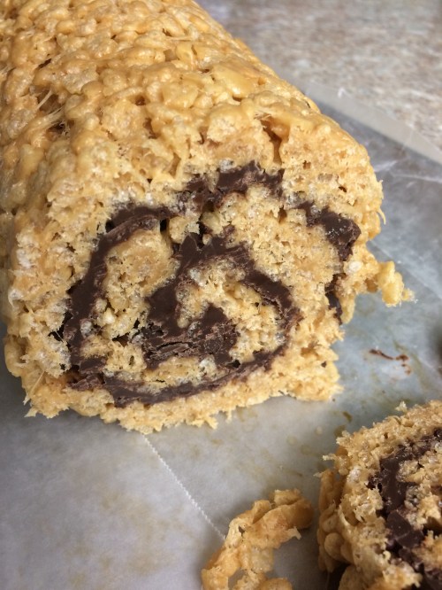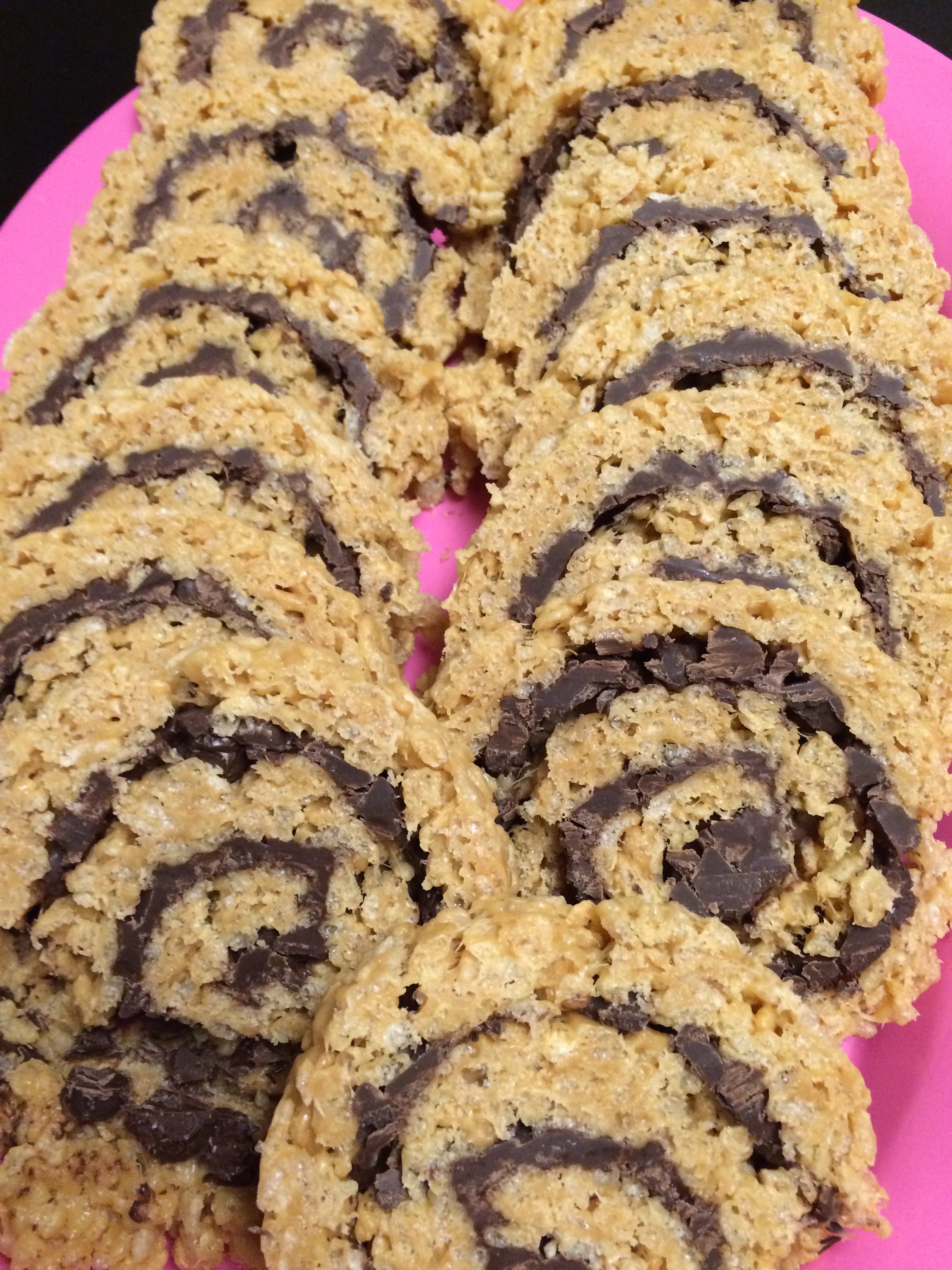 Gorgeousness golden peanut buttery krispies with a perfect chocolate swirl.