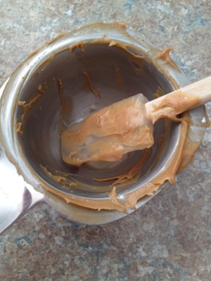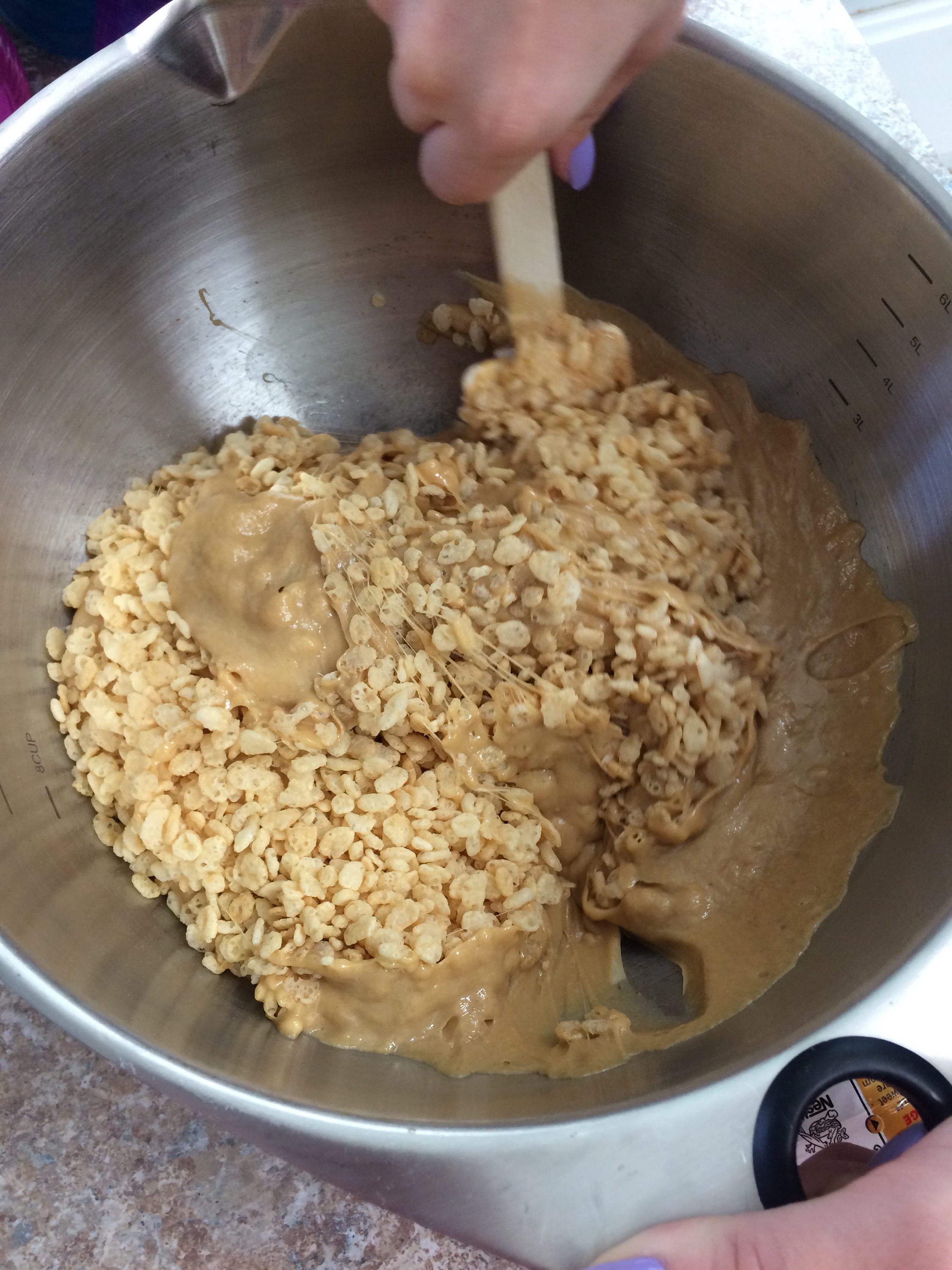 Once it was all melted I poured it on top of the cereal and stirred it all up. It was actually easier to stir than normal because of all that peanut butter.