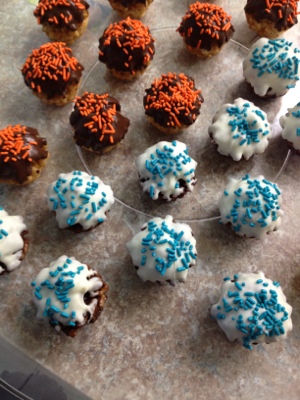 A coworker requested peanut butter krispie treats. With chocolate. I played with the idea before when I made these, but I wanted to do it in a fun different way.