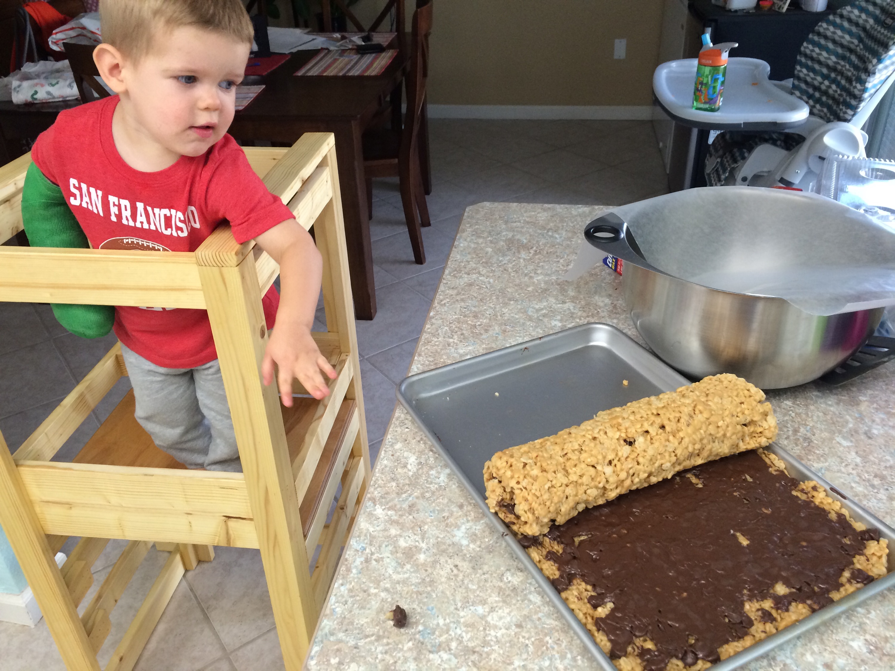 Carter likes to watch in the kitchen from atop his kitchen stool my dad built him.