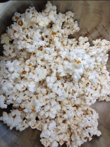 Pop some popcorn. I used kernels and a pot on the stove, but microwave popcorn would work too. Maybe just use unbuttered…