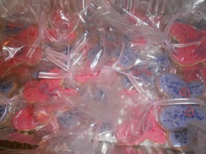 They sat in the fridge/freezer for a few minutes, then they were dipped in candy melts. These I was making for a friend’s birthday, so I did her favorite colors.